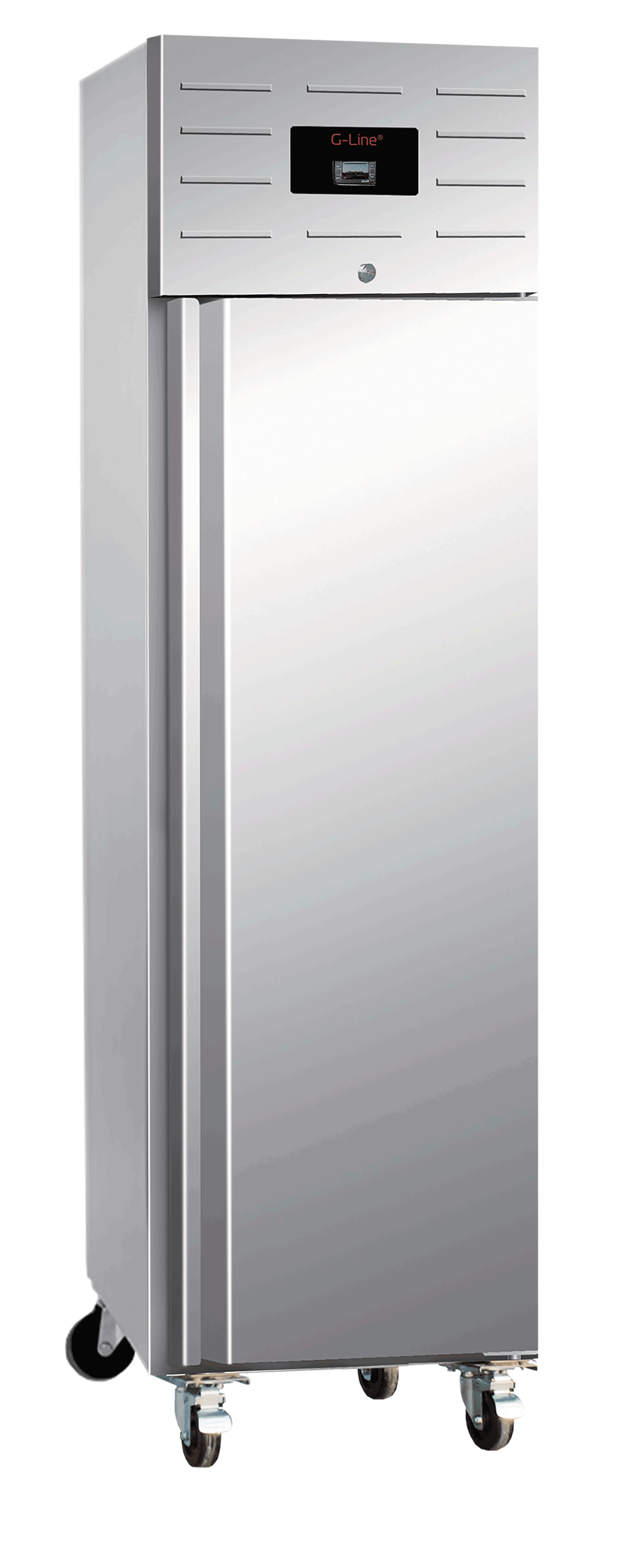 The G-line slim upright freezer is designed for busy kitchen environments. It has strong wheels for flexibility and a stainless steel exterior for high durability. It has adjustable shelving and accepts GN1/1 gastronorm pans. A great value-for-money product.